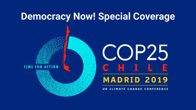 Despite being the largest annual climate summit in the world, the United Nations COP25 in Madrid, Spain is receiving scant media coverage from U.S. and international media. Democracy Now! is once again the only U.S. TV / radio / online news broadcast to dedicate a full week of coverage to this critically important summit.