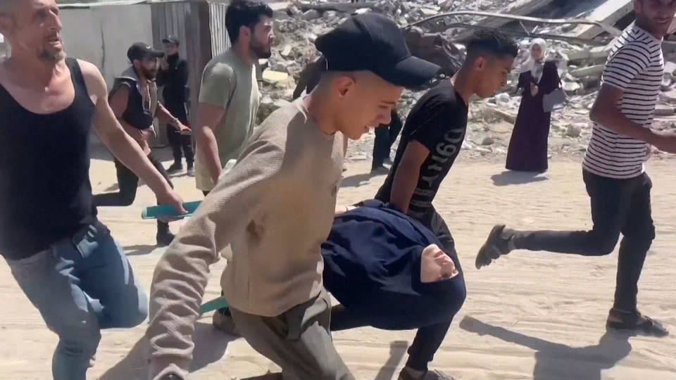 Israeli attacks on the Gaza Strip have killed at least 100 people over the past 24 hours, as bombs, missiles and drones fell on homes, businesses, apartment buildings, and tents housing displaced Palestinians. In one of the latest attacks, Israel bombed a crowded restaurant and marketplace in Gaza City, killing at least 32 people and wounding 86 others. Witnesses said the strike littered the ground with body parts and blood. One survivor fled clutching a baby, with another two terrified children in tow.