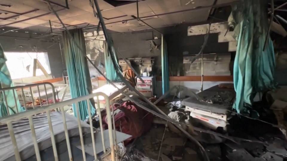 Israeli strikes on Gaza have killed at least 11 Palestinians so far today, with deadly attacks reported in Khan Younis, Beit Lahia and Gaza City. The strikes follow Israeli attacks that killed 54 Palestinians on Monday, and as the U.N. agency for Palestinian refugees, UNRWA, reported some 66,000 children in Gaza are suffering severe malnutrition due to Israel’s total blockade of food and aid, now in its ninth week. Some Palestinians have resorted to eating turtle meat, grass or rotten or expired food. This is a displaced Palestinian mother in Gaza City.