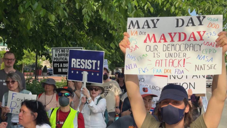 Thousands of people joined demonstrations across the United States Thursday for May Day, widely celebrated as International Workers’ Day around the world. Protesters rallied for the rights of workers, immigrants and Palestinians, with much of their anger directed at the Trump administration and the “billionaire takeover” of Washington, D.C. This is Layan Fuleihan, education director at The People’s Forum.